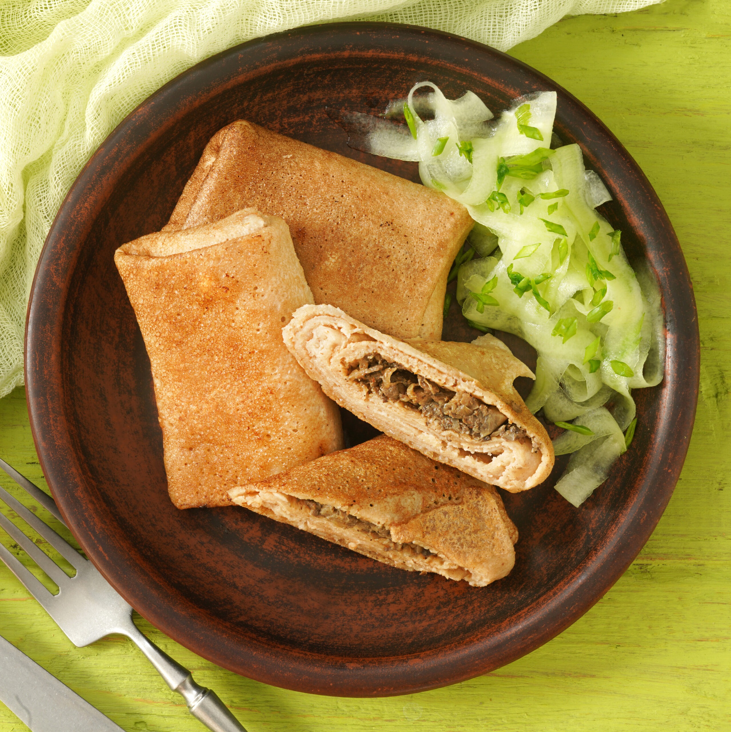 100% веганські млинці з печерицями. Розігрійте млинці, додайте улюблений соус та насолоджуйтеся!