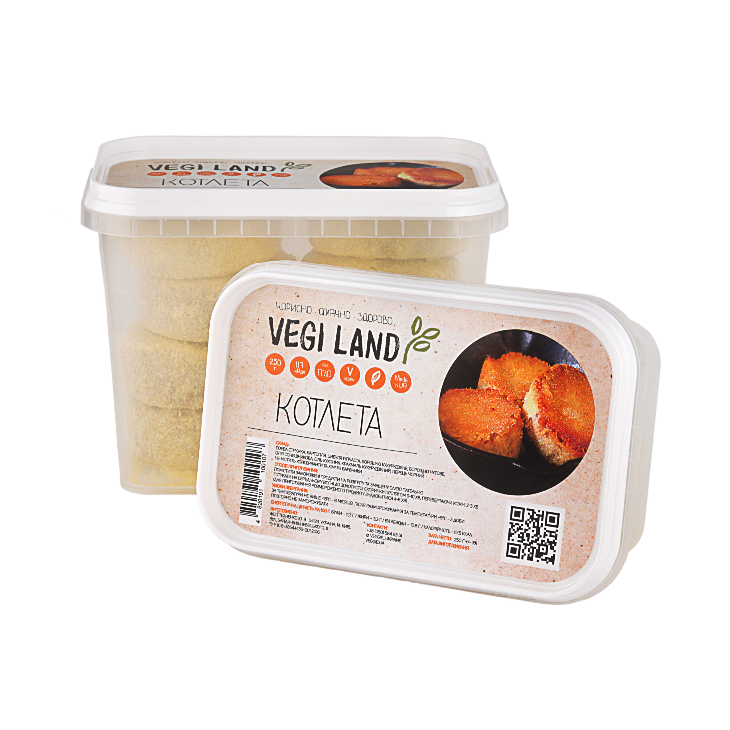 Глютен фрі продукт на основі сої. Панірування з нутового борошна. Це ситне та несподівано смачна страва. Кілька котлет в поєднанні з пюре з бобових або з тушкованою спаржею повноцінно забезпечать добову норму білка для організму людини.
